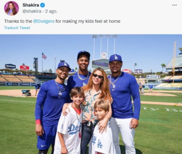 Hace unas semanas estuvo en las playas de Miami con Sasha y Milan, donde fue captada relajada, y hace unos días posteó una foto en la que aparece con sus retoños junto a jugadores de Los Angeles Dodgers.