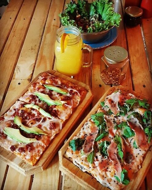 Los sabores que puedes encontrar en este restaurante son las clásicas como la hawaiana o de pepperoni, pero también puedes disfrutar de mariscos, lomo ahumado o jamón serrano con arúgula.