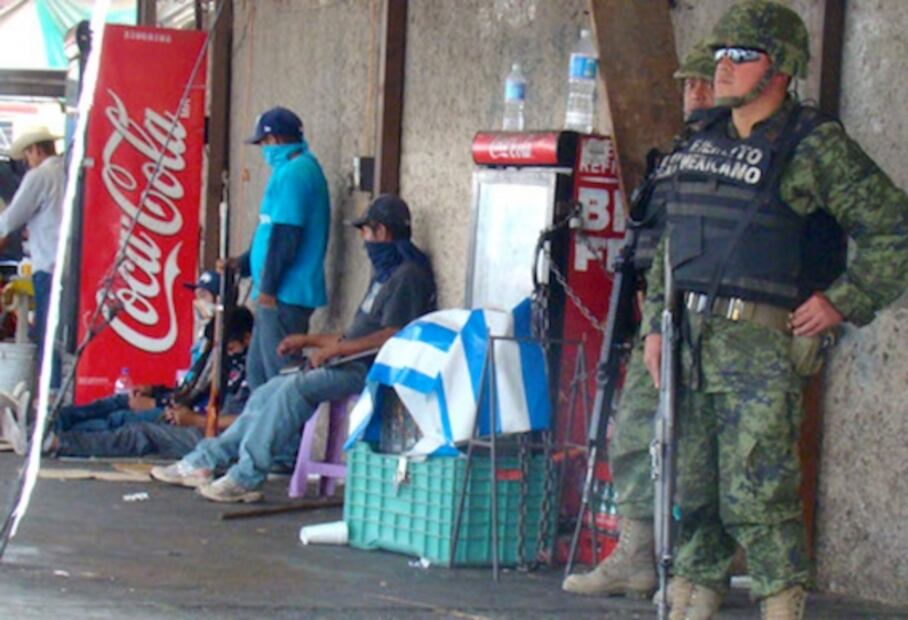 El Ejército, en convivencia con los llamados policías comunitarios. Foto: Colectivo Siempre Vivos.