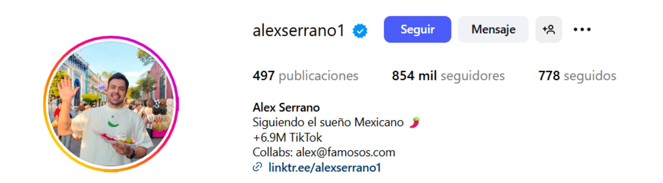Alex Serrano es un influencer y creador de contenido de origen estadounidense que vive en México. A través de su plataforma se dedica a documentar su experiencia en la cultura mexicana, especialmente sobre comida y platillos nacionales.