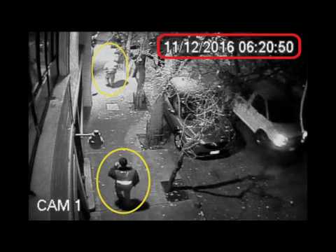 El vecino compartió un video captado por cámaras de seguridad en el que se observa que una persona provoca un incendio en el vehículo entre las 06:00 y 07:00 horas del 11 de diciembre de 2016.
