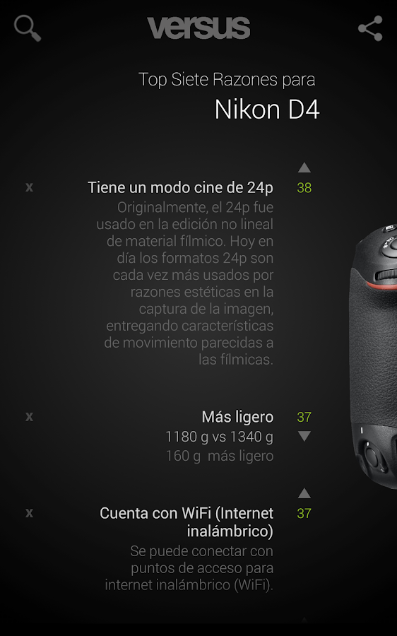 Es por ello que en esta ocasión te presentamos Versus, una app que te permitirá comparar una gran cantidad de modelos de equipos móviles. Una vez iniciada la app, debemos escoger los equipos que deseamos comparar, e inmediatamente Versus nos mostrará los puntos fuertes y débiles de cada uno de ellos.