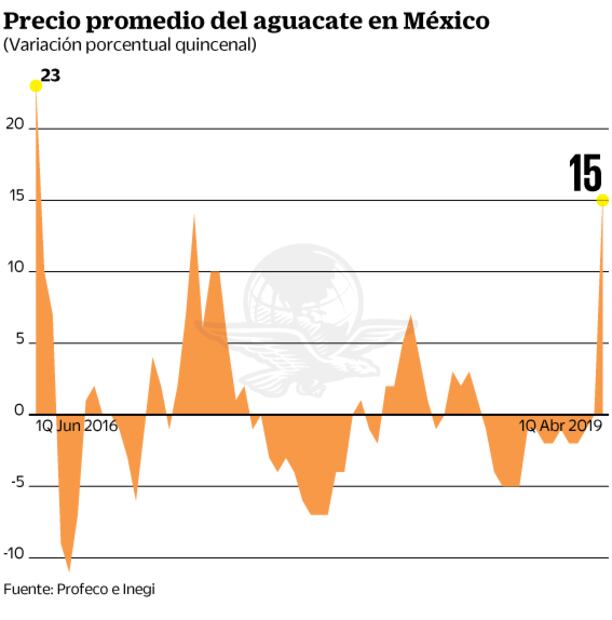 El aumento de precio del aguacate es resultado de la disminución estacional de la oferta de la fruta, además de que se dio en la semana en que se intensificaron exportaciones hacia Estados Unidos con motivo del 5 de mayo, fecha en que aumenta el consumo del guacamole en ese país.