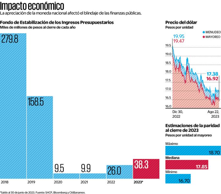 “Si el peso se sigue apreciando, los ingresos petroleros se colocan debajo de lo estimado, y eso puede generar menores recursos para los fondos de estabilización”, detalló.