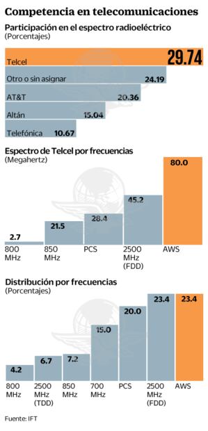 En la fase II la tenencia sube a 35% o 209.42 MHz, por lo que Telcel no rebasaría el límite impuesto.