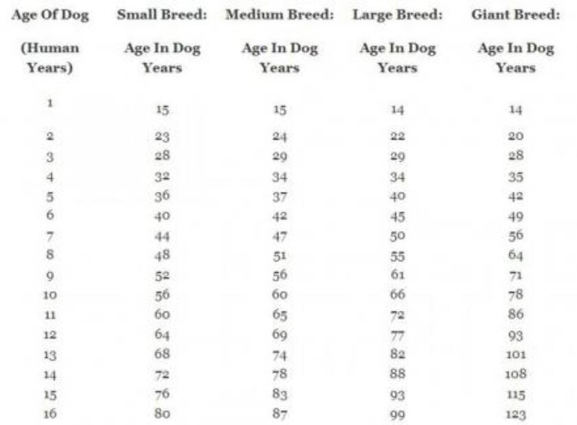 Para tener una visión más clara de la edad de tu perro revisa el siguiente cuadro: