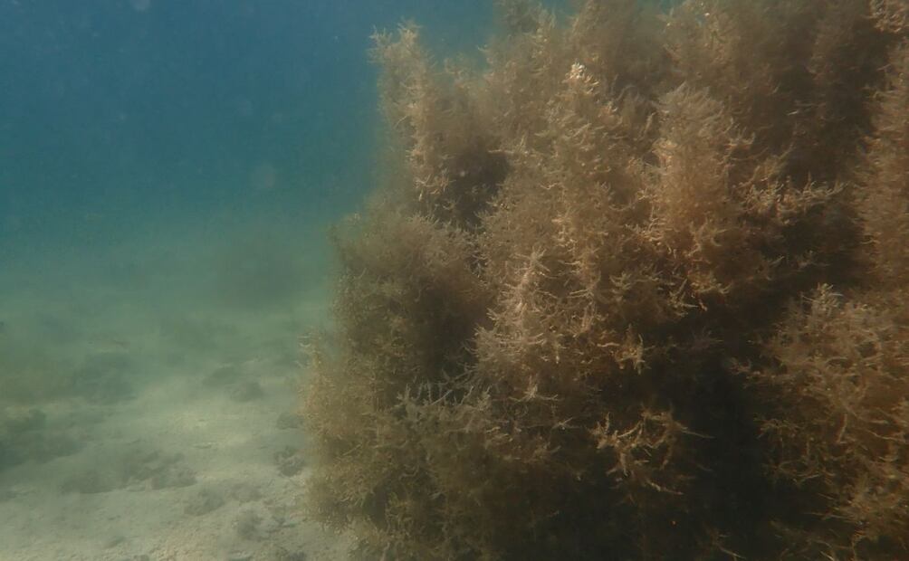 Uno de los impactos más visibles es la desaparición acelerada de los bosques de sargazo, hábitats clave para el desove y refugio de numerosas especies marinas. Dos de los bosques monitoreados en 1999 ya no pudieron ser localizados, y en otras zonas el desprendimiento de estas algas —provocado por el calentamiento anticipado del mar— ha comenzado antes de lo habitual. Además, una invasiva diatomea bentónica (algas microscópicas que viven adheridas a superficies submarinas) ha empezado a cubrir arrecifes enteros, desplazando a otras especies y afectando la alimentación de peces herbívoros. Estos signos evidencian una transformación profunda del ecosistema, acelerada por la combinación de sobrepesca y cambio climático.