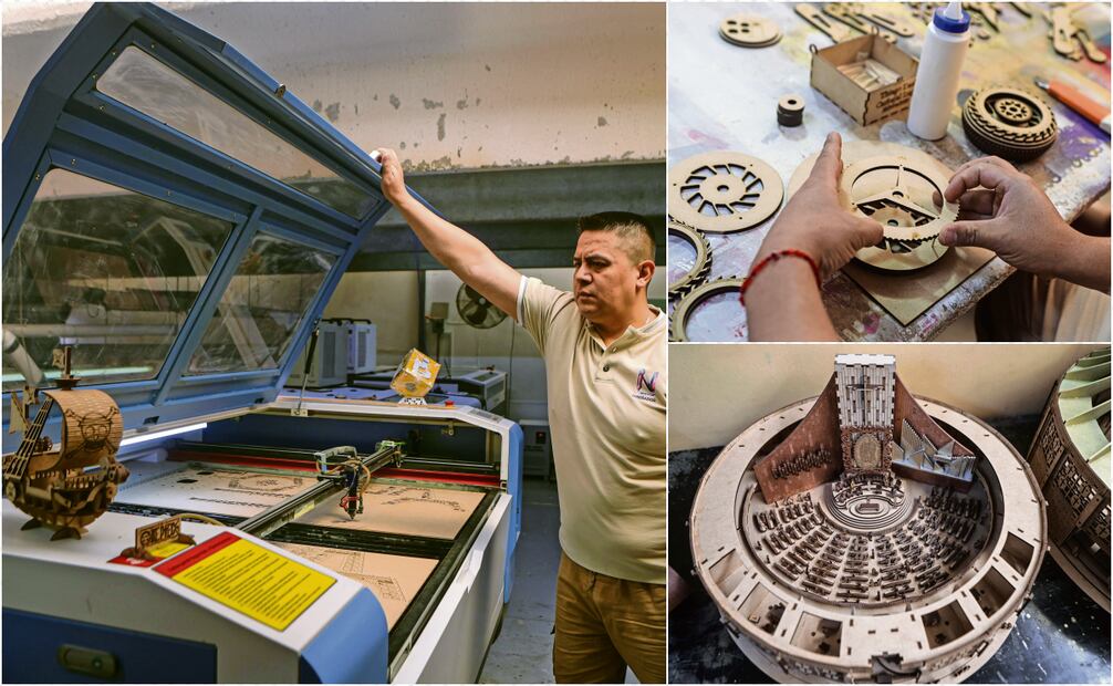 Esta es la crónica de la visita de EL UNIVERSAL al Reclusorio Oriente para conocer las labores del taller de artesanías Arts Factory, Carpintería, Corte y Grabado Láser, empresa dedicada al manejo de la madera por medio de láser, en donde se realizan cortes y grabados para formar figuras de madera.