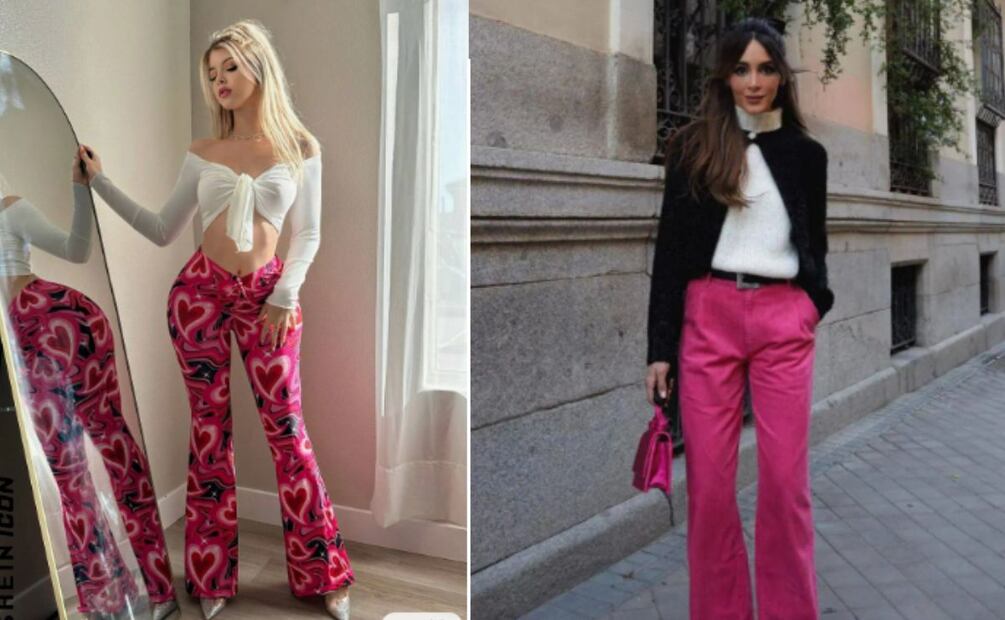 Los estampados con corazones son una apuesta segura para el 14 de febrero. Además, con unos jeans rosa lucirás más linda que nunca en este Día San Valentín, especialmente si no quieres lucir el clásico rojo. Acompaña tus jeans acampanados de colores vivos con blusas o suéteres de cuello de tortuga en colores neutros como el blanco.