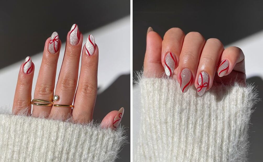 Ahora, los lazos se suman a la larga lista de figuras que adornan las uñas navideñas, acompañan copos de nieve, estrellas, pinos y esferas; se llevan en tonos de la temporada como verde y rojo. ¡Como un moño de regalo clásico, se lucen en las manicuras de la época de fiestas!