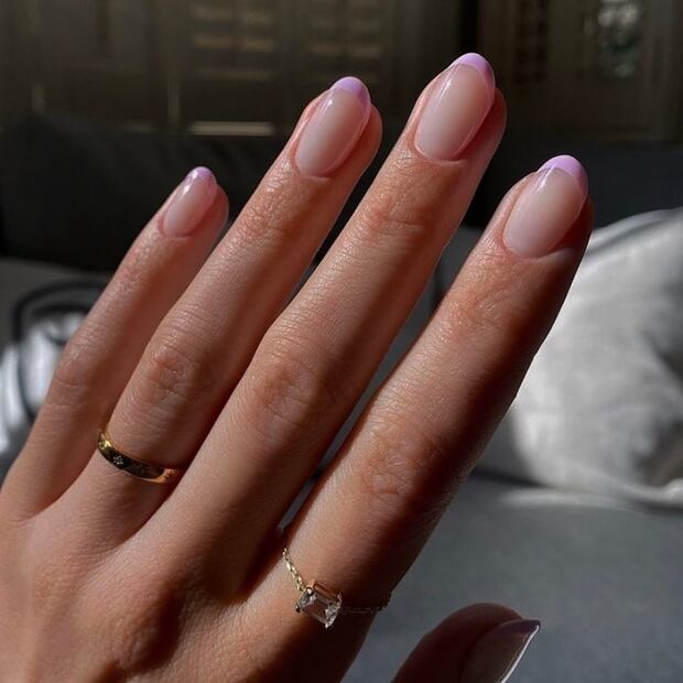 Combinando una base neutra con un diseño francés en lila, este estilo aporta una elegancia clásica con un giro moderno. Es una opción versátil que se adapta a distintas ocasiones y estilos personales sin perder la esencia de las jacarandas.