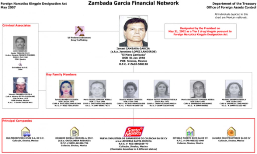 Moreover, his three sons are not involved in the companies and are not blacklisted by the OFAC: Ismael Zambada Imperial, aka “El Mayito Gordo; ” Serafín Zambada Ortiz aka “El Sera,” and Ismael Zambada Sicairos, aka “El Mayito Flaco."