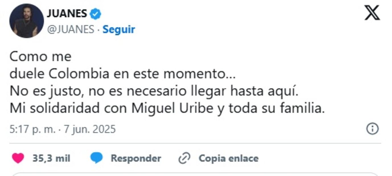 El atentado que sufrió el senador colombiano, Miguel Uribe Turbay, provocó una fuerte oleada de reacciones. Pero más allá de la política, fue el mundo artístico quien levantó la voz para expresar su solidaridad a la familia y rechazar la violencia que se vive en el país.