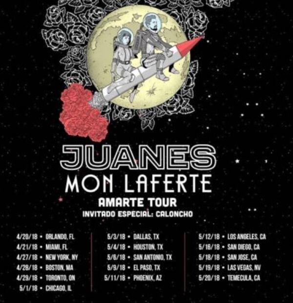 El cantante colombiano Juanes quiere transmitir la "química" que tiene con la artista chilena Mon Laferte , que les llevó a ganar un Grammy Latino juntos en noviembre pasado, al público de los 16 conciertos de su gira conjunta de 2018 por Estados Unidos y Canadá.