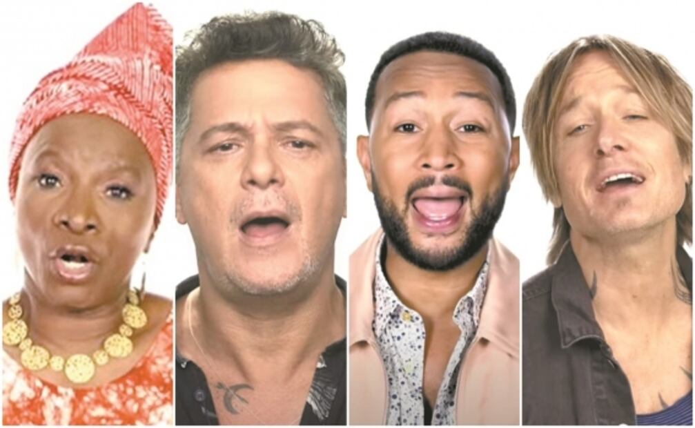 El cantante estuvo acompañado de artistas como Angélique Kidjo, John Legend y Keith Urban, quienes unieron sus voces (vía las pantallas gigantes del inmueble) para llegar a lo más profundo de los corazones presentes en el estadio y los millones que presenciaron la ceremonia a través del televisor. El efecto fue inmediato.