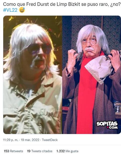 Para muchos, la presentación de Limp Bizkit en el Vive Latino fue el momento más esperado, sobre todo para los llamados "chavorrucos", quienes recibieron burlas en redes sociales cuando Fred Durst , el líder de la banda, apareció en acción en el escenario.