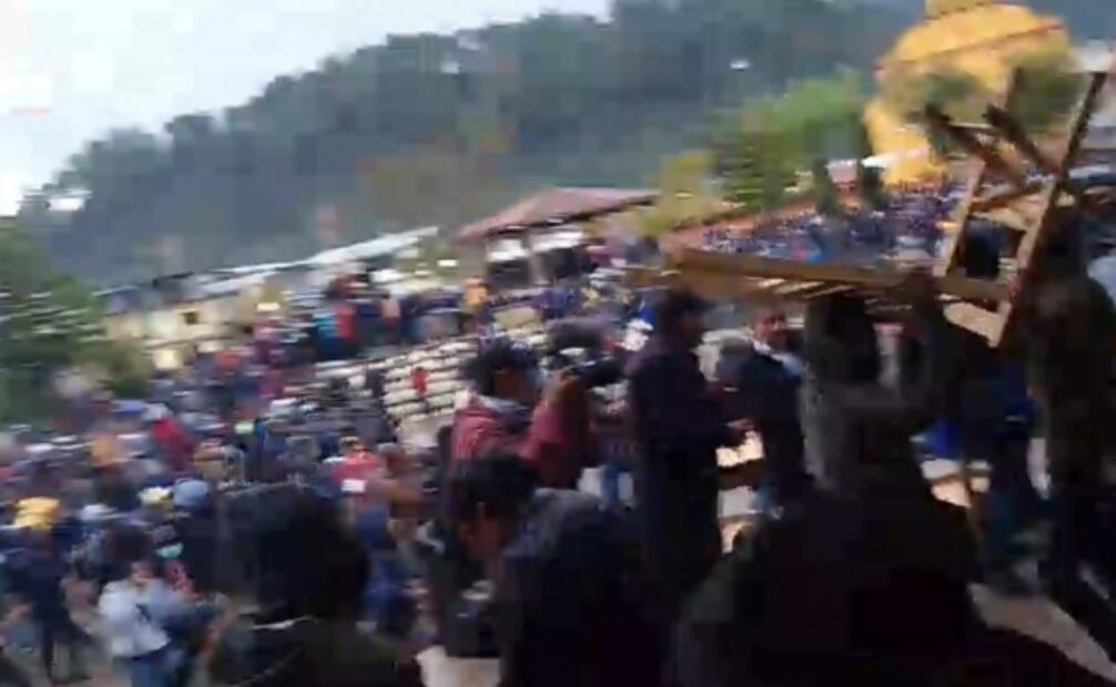 Testigos que presenciaron la fallida elección de alcalde comentaron que primero fueron piedras, cohetones, sillas y otros objetos que se lanzaron al aire los grupos antagónicos, pero después apareció un grupo de hombres que llevaban fusiles de asalto y rifles.