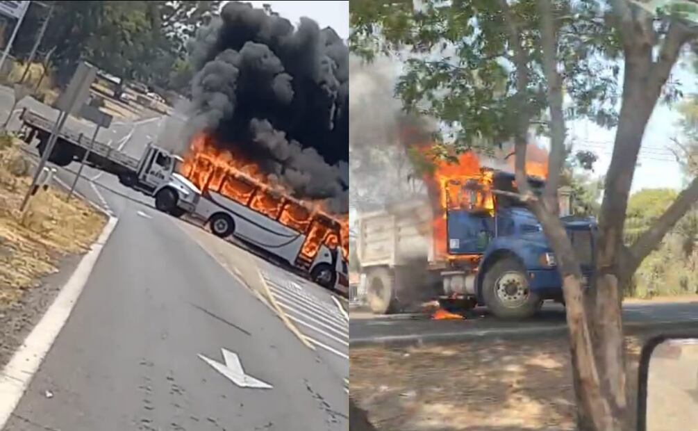 Minutos más tarde, el bloque delictivo, se apoderó de tráileres, camiones de carga y camionetas de empresas comerciales, a los que les prendieron fuego.