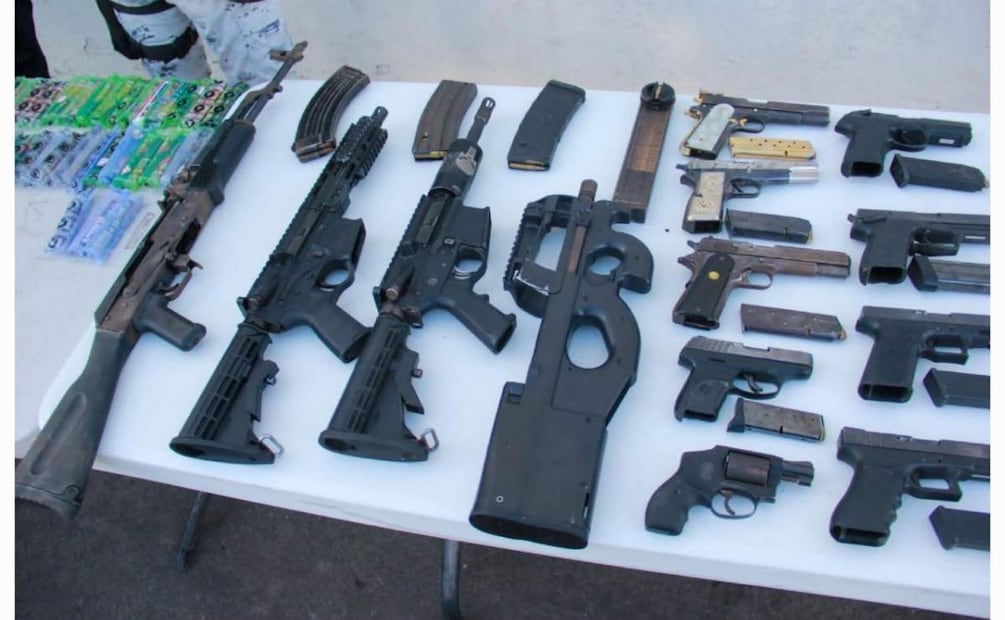 Además, se localizaron 28 cargadores de AK-47, once para AR-15, dos de disco para fusil AK-47, tres de disco, para AR-15, 47 cargadores para pistolas de diversos calibres, tres cargadores para P90, una granada de mano y tres artefactos explosivos improvisados.
