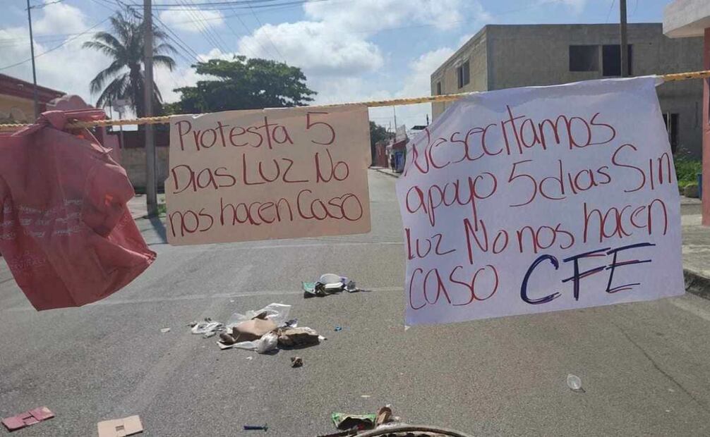 También, esta mañana un grupo de vecinos de la colonia Alemán bloqueó la entrada de las oficinas de la CFE, ubicadas en la planta Nachi Cocom, para exigir el restablecimiento de la electricidad, pues desde el sábado se suspendió el servicio.