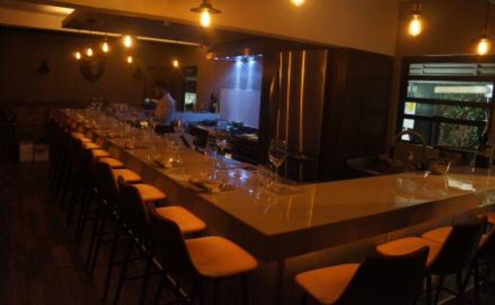La oportunidad llegó con NoM , un restaurante de cocina expuesta de estilo speakeasy . Esto quiere decir que número uno, es un poco difícil de encontrar, un lugar pequeño y acogedor (sólo caben unas 15 personas); y número dos, que todo el menú lo preparan frente a ti. Es una especie de omekase japonés pero con cocina europea – mexicana.