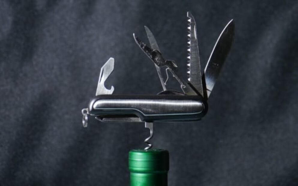Necesitas uno que abra botellas de vino y de otros tipos, mejor si tiene una navajita que te ayude a quitar sellos y protectores plásticos de los tapones.