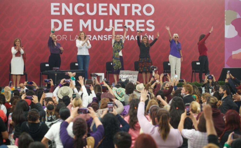 Desde antes de las 09:00 de la mañana, mujeres afines a la 4T arribaron al recinto para la cita que tuvieron a las 11:30 horas; algunas esperaban las playeras moradas que se repartían con el logotipo de la alcaldía a la que pertenecían, otras portaban carteles con las leyendas “Mujeres de Morena”, procedentes de Veracruz, Campeche, Guerrero, y de alcaldías de la CDMX, como Tláhuac, Coyoacán, Iztapalapa, entre otras, mientras se tomaban selfies y la foto grupal del recuerdo.