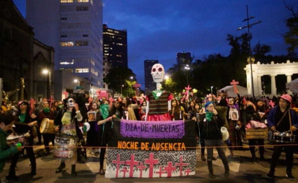 Asimismo, nombraron a más de 30 mujeres que fueron asesinadas este año y colocaron una ofrenda de Día de Muertos con fruta, flores de cempasúchil, veladoras y papel picado.