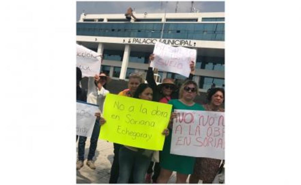 “ No, no, no a la obra de Soriana Echegaray ”, gritaron frente a la presidencia municipal, donde cuestionaron a funcionarios locales por otorgar autorizaciones para una construcción que viola el uso de suelo e impacta a la zona habitacional.