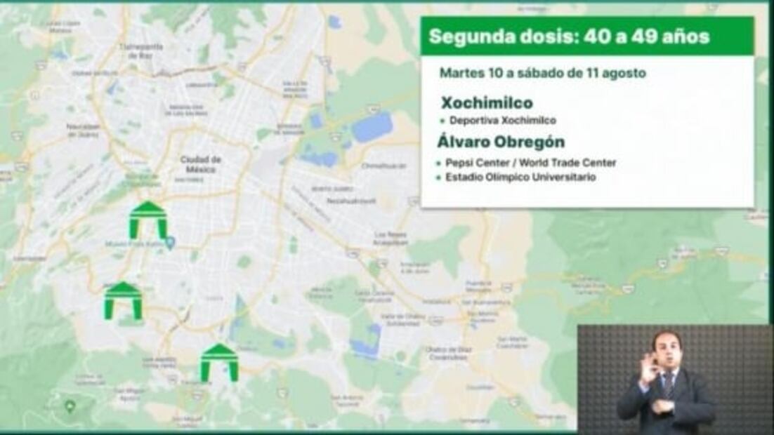 Los adultos de 40-49 años de Xochimilco y Álvaro Obregón serán vacunados con la segunda dosis de AstraZéneca del martes 10 al sábado 14 de agosto.