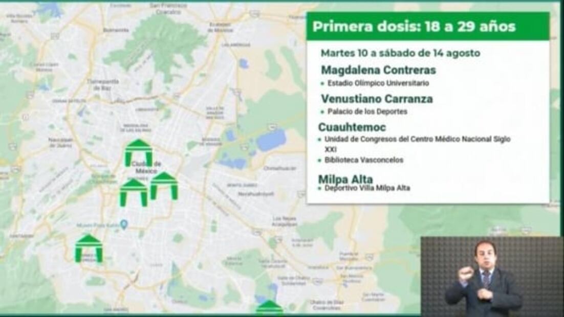 Los jóvenes de 18-29 años de Milpa Alta, Magdalena Contreras, Venustiano Carranza y Cuauhtémoc recibirán la primera dosis del biológico contra el coronavirus, del martes 10 al sábado 14 de agosto.