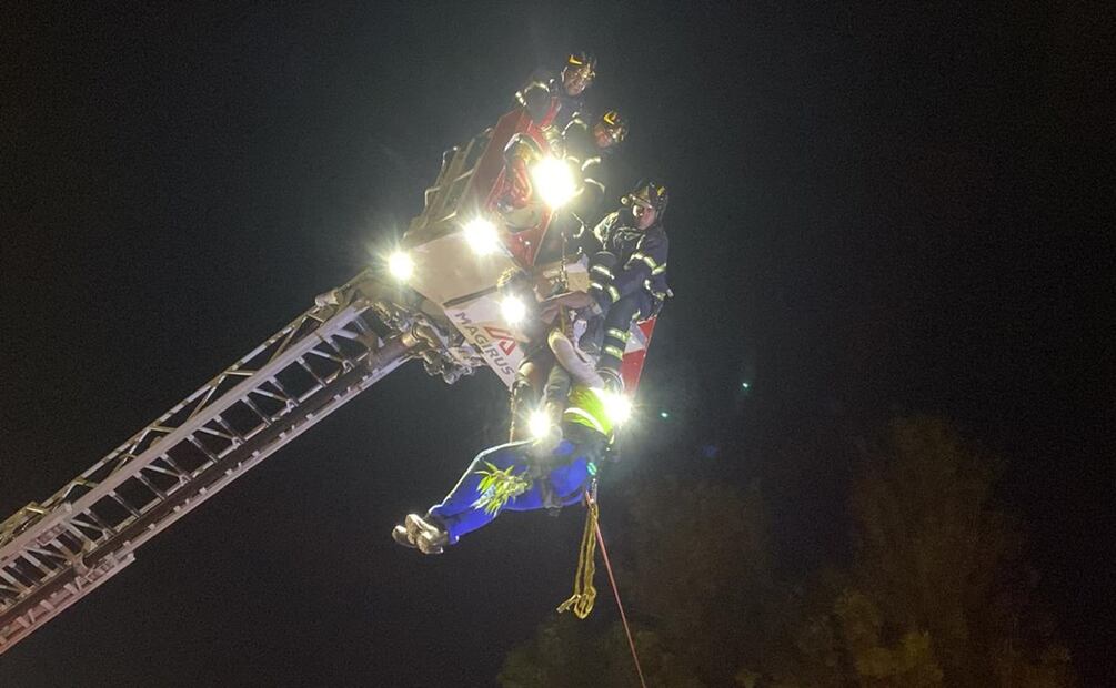 Una vez realizado el descenso, y con apoyo de un camión con escaleras de uso industrial, pusieron a salvo al hombre en tierra, donde los paramédicos valoraron su estado de salud y lo diagnosticaron con crisis psicótica.
