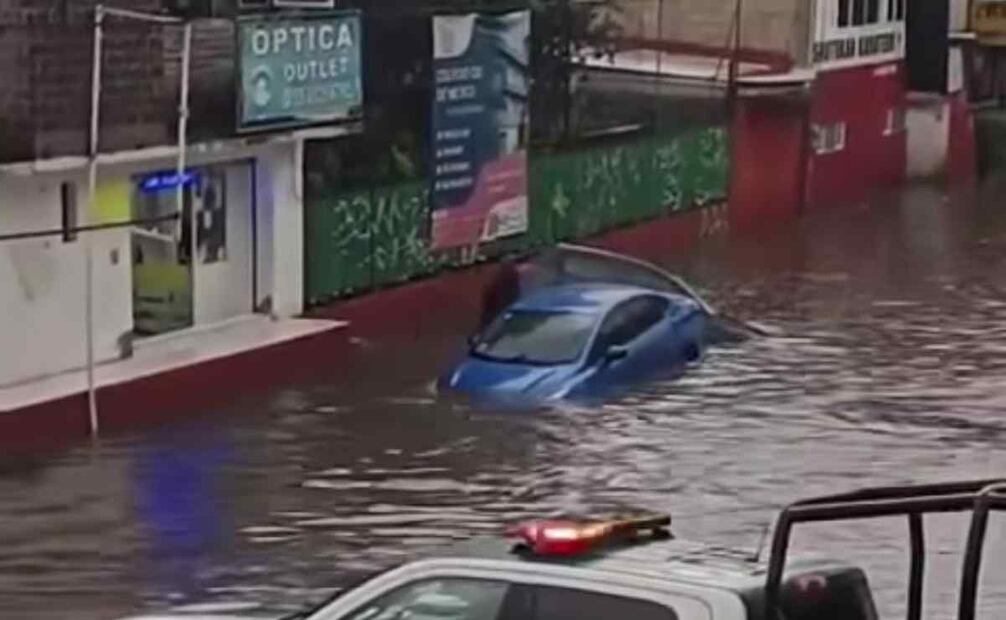 Las fuertes lluvias inundaron calles de la alcaldía Tlalpan; se reportaron vialidades anegadas y dos vehículos atrapados por el agua estancada.