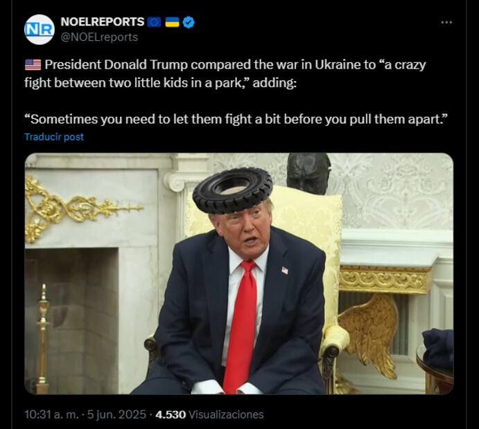 En una reunión en la Oficina Oval con el canciller alemán Friedrich Merz, Trump comparó la guerra en Ucrania —que Rusia invadió a principios de 2022— con una pelea entre dos niños pequeños que se odian.