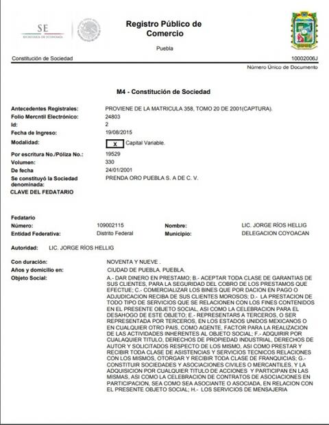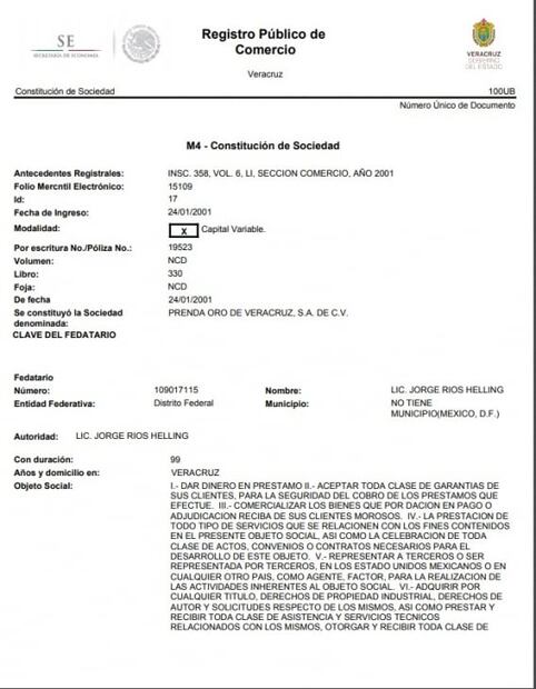 Prenda Antequera está inscrita en el estado de Oaxaca y sobre Prenda Oro de Palma, Prenda Oro San Cosme y Prenda Oro del Estado de México no se encontró inscripción en el RPC; no obstante, se mencionan en la asamblea donde se vota para la fusión. Casa de Empeño Siglo XXI está inscrita en Acapulco, Guerrero, pero cuenta con las filiales Tabasco, Del Sureste, Tampico, Villahermosa, Made-ro, Tamaulipas.