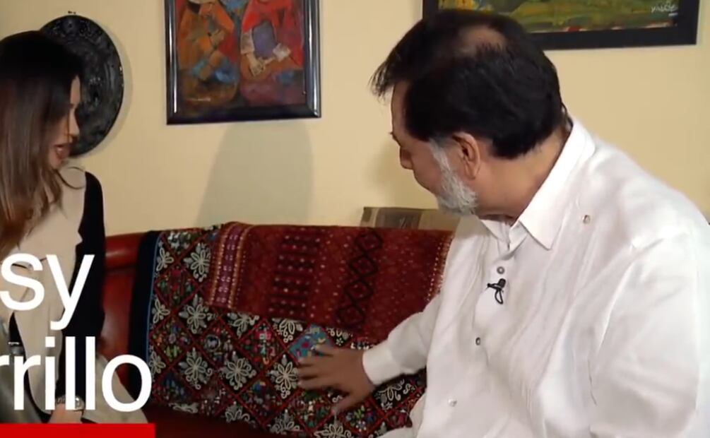 El morenista presentó algunas de las decoraciones que tenía el departamento: cubresillones de Chiapas y Michoacán, carpetas tejidas por Mazahuas, piezas de cerámica y diablos de papel mache decorando su mesa.