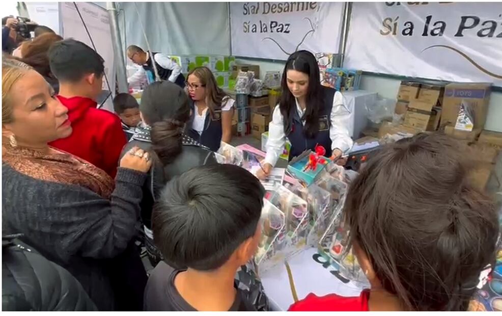 Decenas de niños canjean sus juguetes bélicos por didácticos. En su mayoría son menores de 14 años, acompañados por sus padres quienes, sin dar otro dato más que el nombre de sus pequeños, hacen el intercambio.