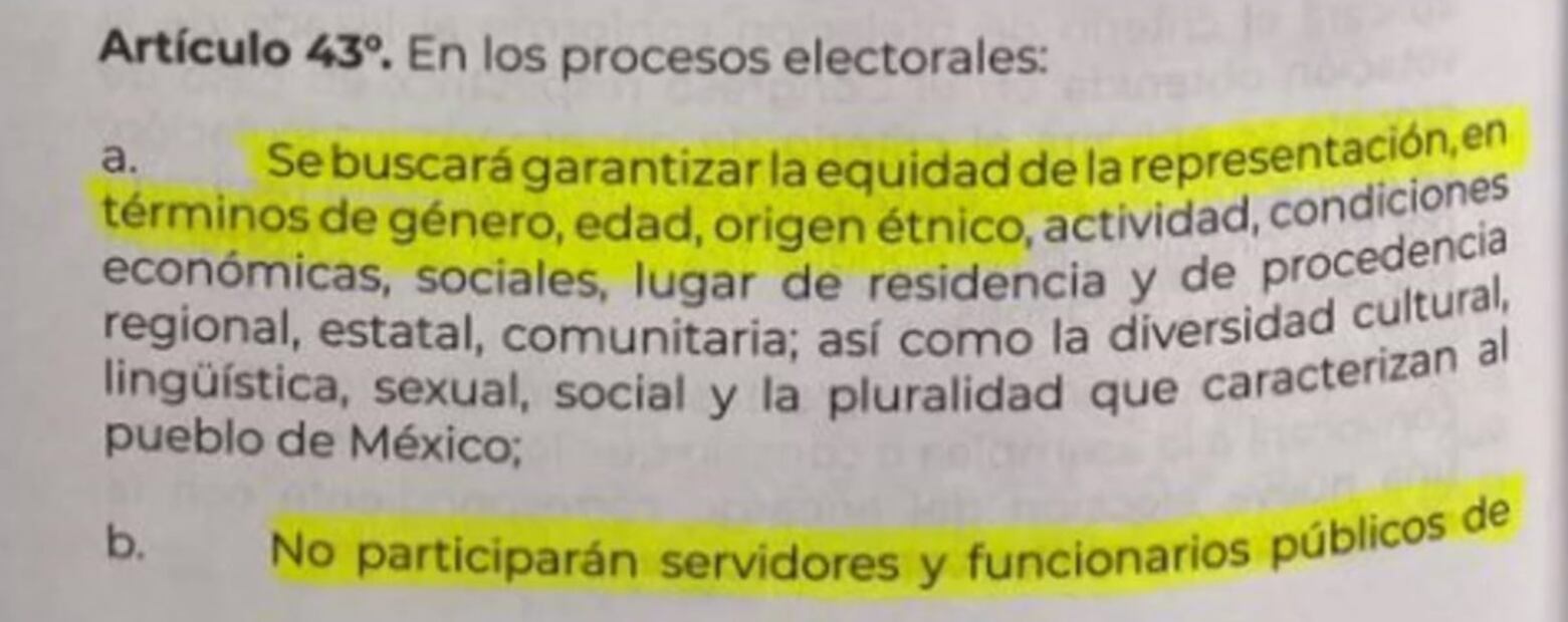 Ante ello, Polevnsky enfatizó en que leyeran los estatutos de Morena, mostrando el documento en el programa en el que señaló el incumplimiento del artículo 43 con respecto a la equidad de género en la contienda electoral.