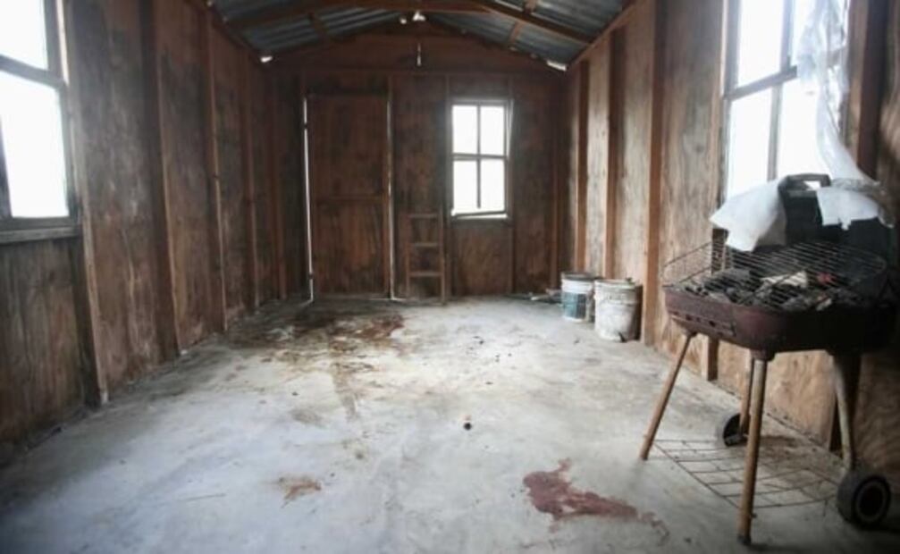 En la casita, de aproximadamente 10 por 7 metros, color terracota y techo de lámina, al interior todavía se pueden observar manchas de sangre secas que habrían pertenecido a los cuatro ciudadanos estadounidenses secuestrados: Latavia Tay McGee, Shaeed Woodard, Zindell Brown y Eric James Williams.