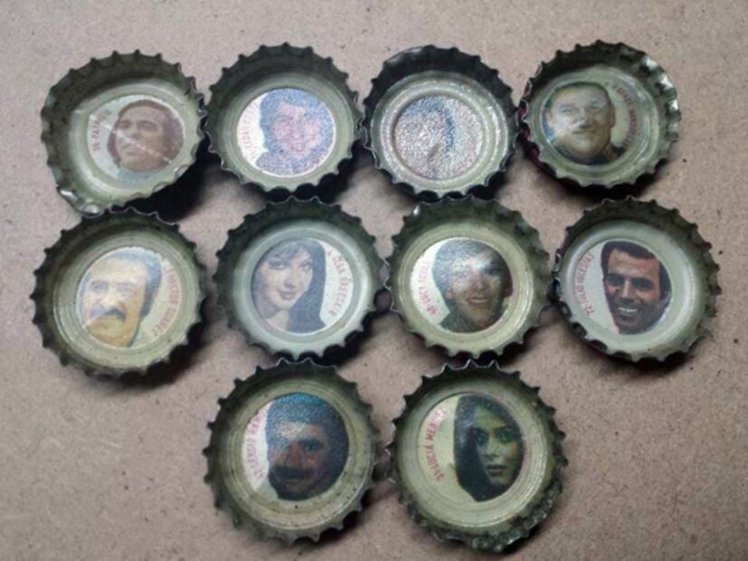 Los rostros de varios artistas también aparecieron grabadas en el interior de estas tapas de refresco en los años 70. Cortesía.