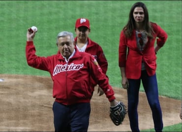 El presidente Andrés Manuel López Obrador lanzó la primera bola desde el montículo para dar paso al partido de exhibición entre prospectos de Los Padres de San Diego, equipo de las Ligas Mayores contra la novena mexicana de Los Diablos Rojos del México