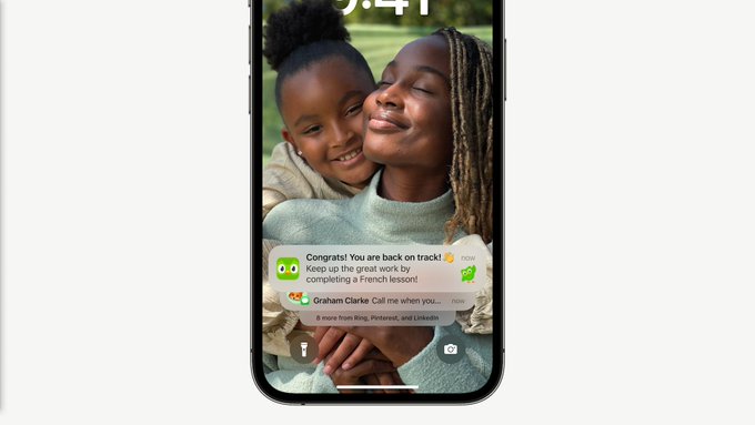 De igual forma, con la intención de que las notificaciones no tapen el fondo de pantalla del usuario, estas ahora aparecerán en la parte inferior. Otra de las novedades, es que ahora iOS16 te permitirá contar con diferentes imágenes como fondo de pantalla.