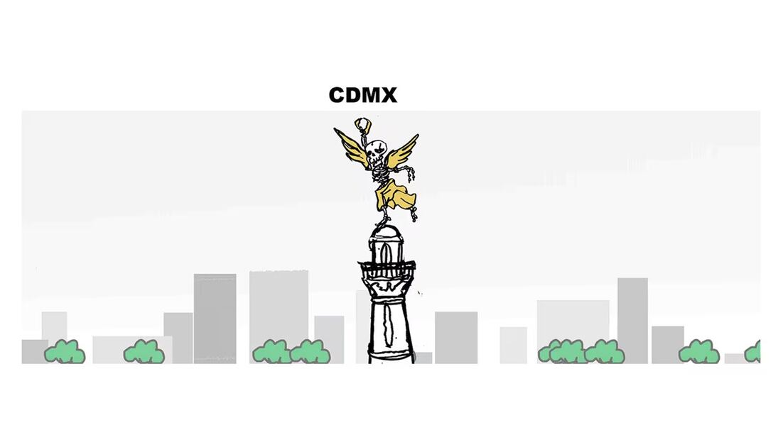 Finalmente, en el quinto cartón hecho por Antonio Garci, de El Financiero, se muestra el esqueleto del Ángel de la Independencia.