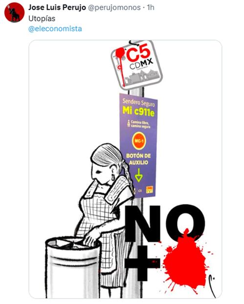 El cuarto cartón, titulado: “Utopías”, y hecho por el monero Perujo, se ve una mujer al lado del poste de Sendero Seguro; sin embargo, en la parte de arriba aparece un letrero del Centro de Comando, Control, Cómputo, Comunicaciones y Contacto Ciudadano de la CDMX (C5) cubierto de sangre.