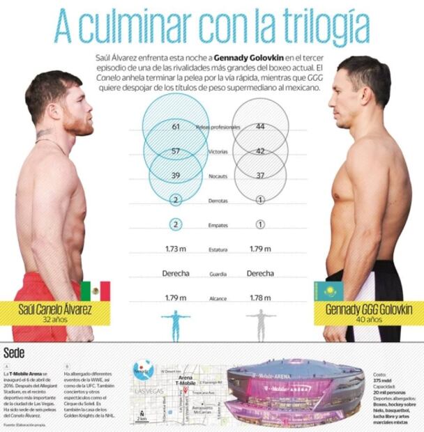 El Canelo es el primer mexicano en ser campeón indiscutido de peso supermedio. Sus cetros están en juego en una división que será nueva para Golovkin, así que no podrá darse el lujo de sumar una segunda derrota de manera consecutiva —la tercera de toda su carrera—, además de ser despojado de sus más preciados cinturones. Lo que lo convierte en un peleador peligroso será su hambre de triunfo, su revancha personal y profesional y, como lo ha mencionado últimamente, su derrota se convirtió en una motivación para enfrentar, derrotar y retirar a Golovkin.